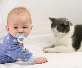 Fëmijët e porsalindur, bebet, fëmijet e vegjël, ne e dimë se nuk mund të kujdesen për kafshët në familje. Kështu nëse ju e kishit një kafshë shtëpiake , apo nëse adoptuat një, menjëherë sapo lindi fëmija juaj;- sigurohu që të bësh prezantimin mes fëmijës dhe qenit apo maces shtëpiake ashtu sic duhet. Këshilla kryesore që ne ju japim; mos i lini asnjëherë pa mbikqyrje kur janë duke u njohur, apo luajtur me njëri-tjetrin, gradualisht rrite kohën që ata kalojnë me njëri tjetrin, gjithmonë nënmbikqyrjen tuaj.