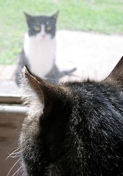Hapi 2: Lërini macet të shikojnë njëra tjetrën.