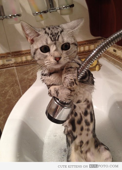 Hyrje » Për fermerët, pronarët dhe dashamirësit e kafshëve » Megjithëse brenda në shtëpi…sërisht kanë frikë!!! » mace e frikesuar ne dush
