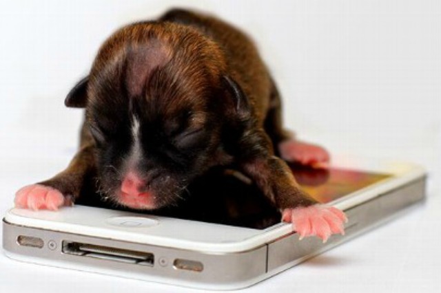 Këlyshia e cila peshon vetëm 113 gram, rri qetë mbi një iPhone.