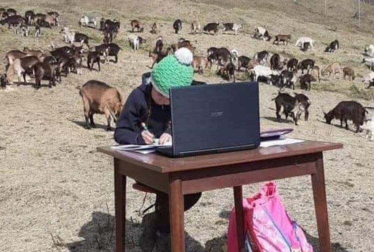 Fiameta po e çon mësimin në këtë kohë pandemie, një një tjetër nivel, duke studiuar në lartësinë 1.000 (1 mijë )metra dhe duke ndihmuar babain e saj në punët që blegtorët dhe çobenët hasin çdo ditë.