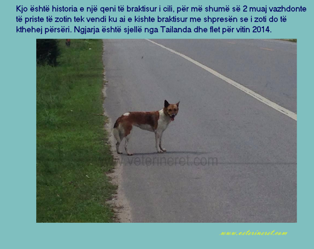 Kjo është historia e një qeni të braktisur i cili për më shumë së 2 muaj vazhdonte të priste të zotin tek vendi ku ai e kishte braktisur me shpresën se i zoti do të kthehej përsëri. Ngjarja është sjellë nga Tailanda dhe flet për vitin 2014.