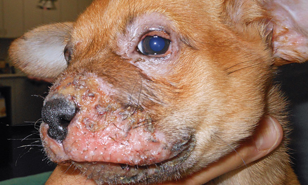 Botuar më te 620 × 372 në Pyoderma juvenile- Celulitis juvenil, tek këlyshët e qenit.