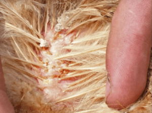 Diagnoza: Dyshimet e para mund të shfaqen kur të gjitha pulat kruhen, zvogëlim në prodhimin e vezëve, dobësim dhe anemi dhe mortalitetin e zogjëve të vegjël të sëmurë.