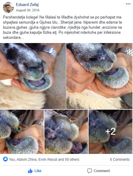 Dëshirojmë të përmendim rastet e Gjuhës blu kur kolegët nuk reshtën së postuari foto dhe pasqyra klinike të kafshëve të sëmura, duke ndarë me në rastet specifike me tabllo klinike dhe vendodhjen e rastit te dyshuar (dhe të konfirmuar në shumë raste).